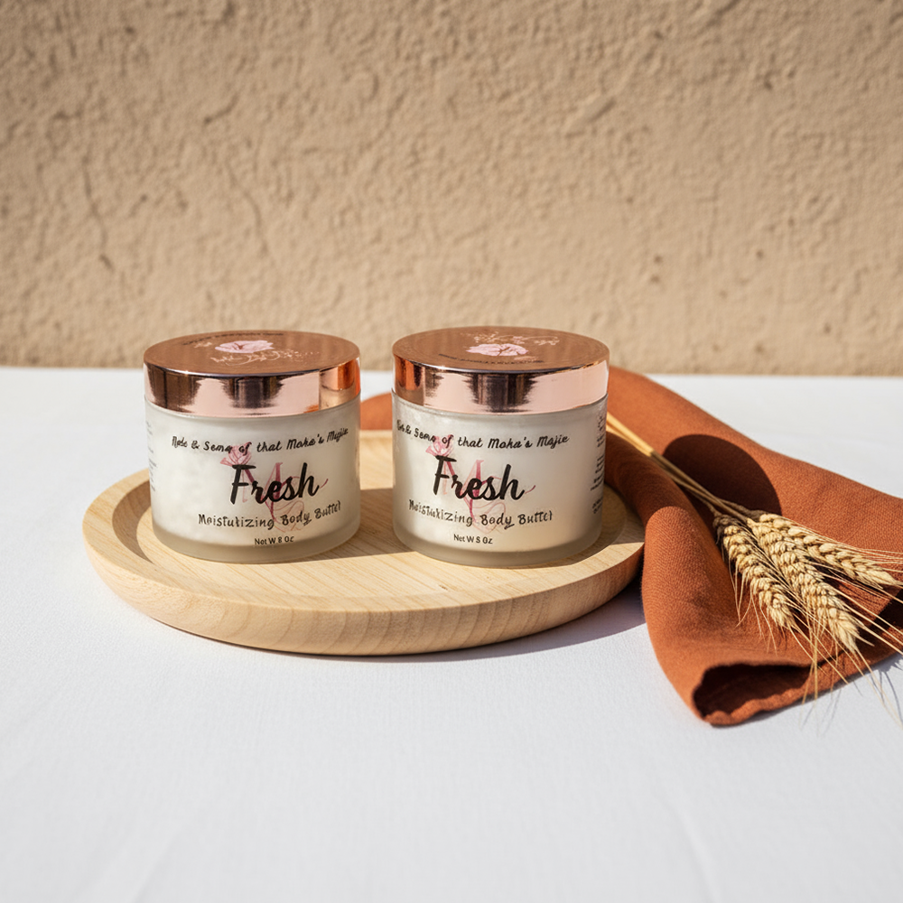 Energizing shea, murumuru, and sal butters with eucalyptus lemon, bamboo, and green tea notes for refreshed, hydrated skin.